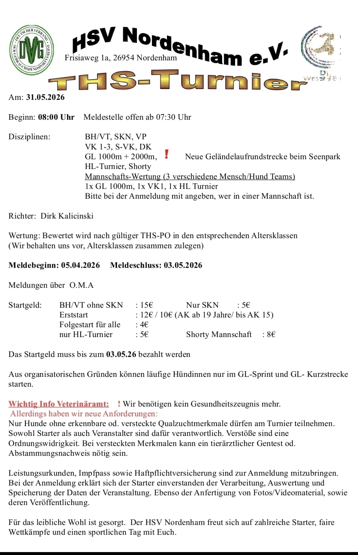 | 31.10.2026 | HSV Nordenham e. V. (alle VDH-Klassen) |